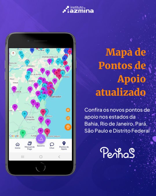 Outro resultado importante do projeto foi a atualização do Mapa de Pontos de Apoio do PenhaS, ferramenta que ajuda mulheres a localizar serviços de atendimento próximos de onde estão.